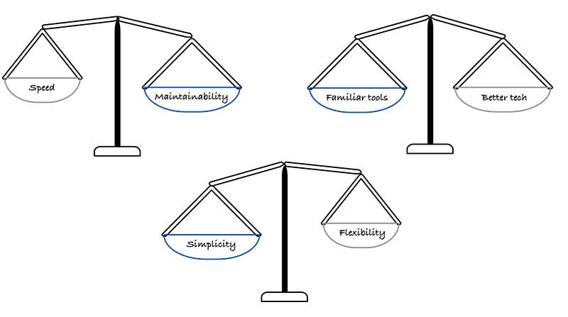 Heated debates over the perfect language, architecture or framework often miss the point entirely. Every technical decision involves trade-offs: speed vs. maintainability, simplicity vs. flexibility, familiar tools vs. better technology.