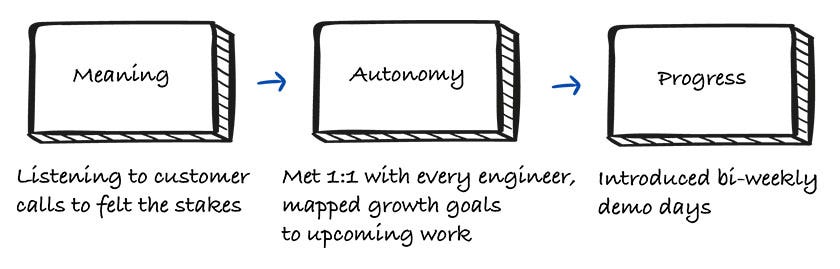 Progress → make steady wins visible; celebrate learning as much as shipping