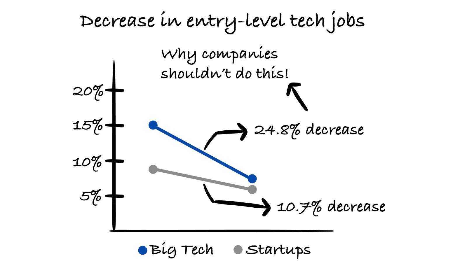 The question is definitely valid, as there has been a decline in entry-level tech roles in our industry, especially in Big Tech. But is this the right way to go for companies?