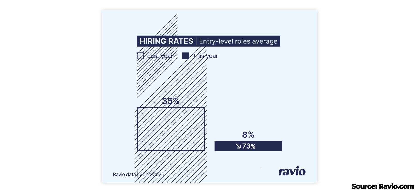 There is a similar sentiment from the report from Ravio, where they mention the decrease of entry-level tech roles of 73%.