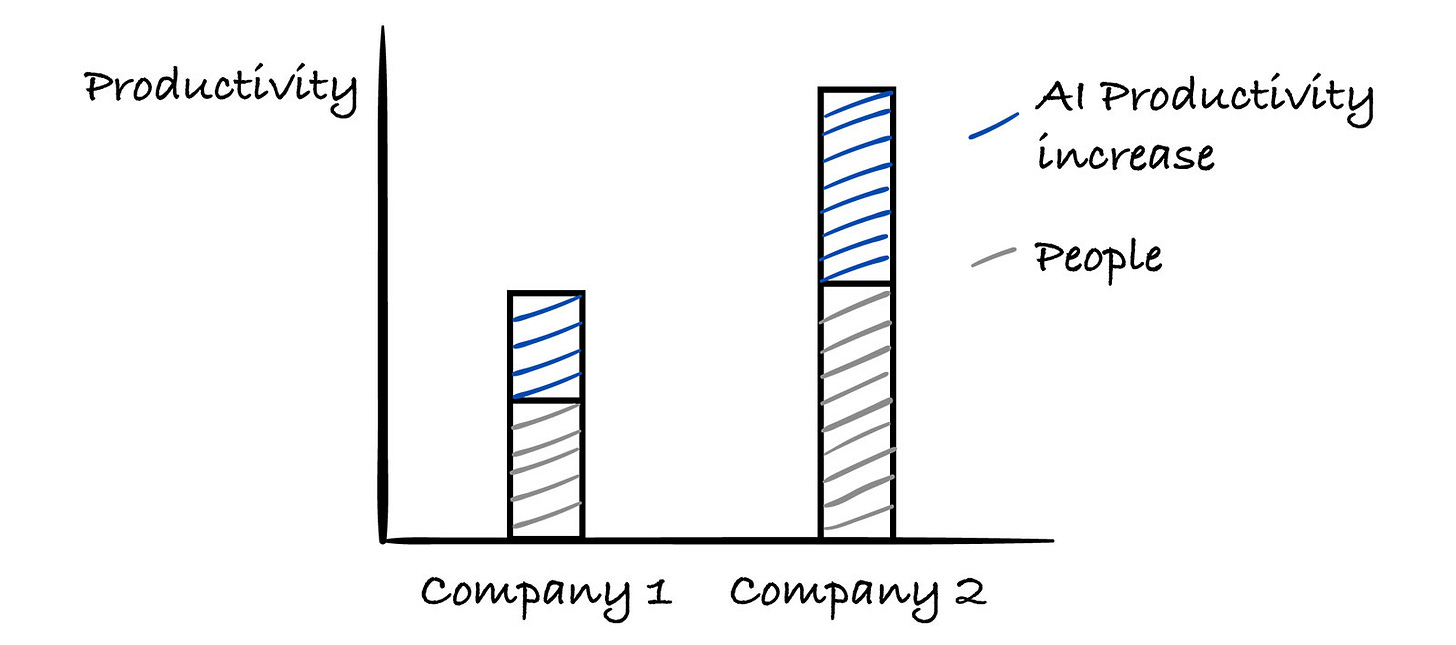 A lot of companies that are selling AI products are automatically incentivised to go for the first route, because it’s aligned to what they are selling → more productivity, with fewer people. It’s their value proposition that they are offering.