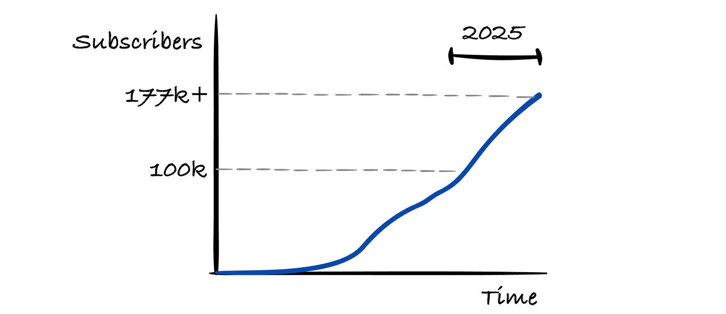 177k+ subscribers (up from 100k~ at the end of 2024)