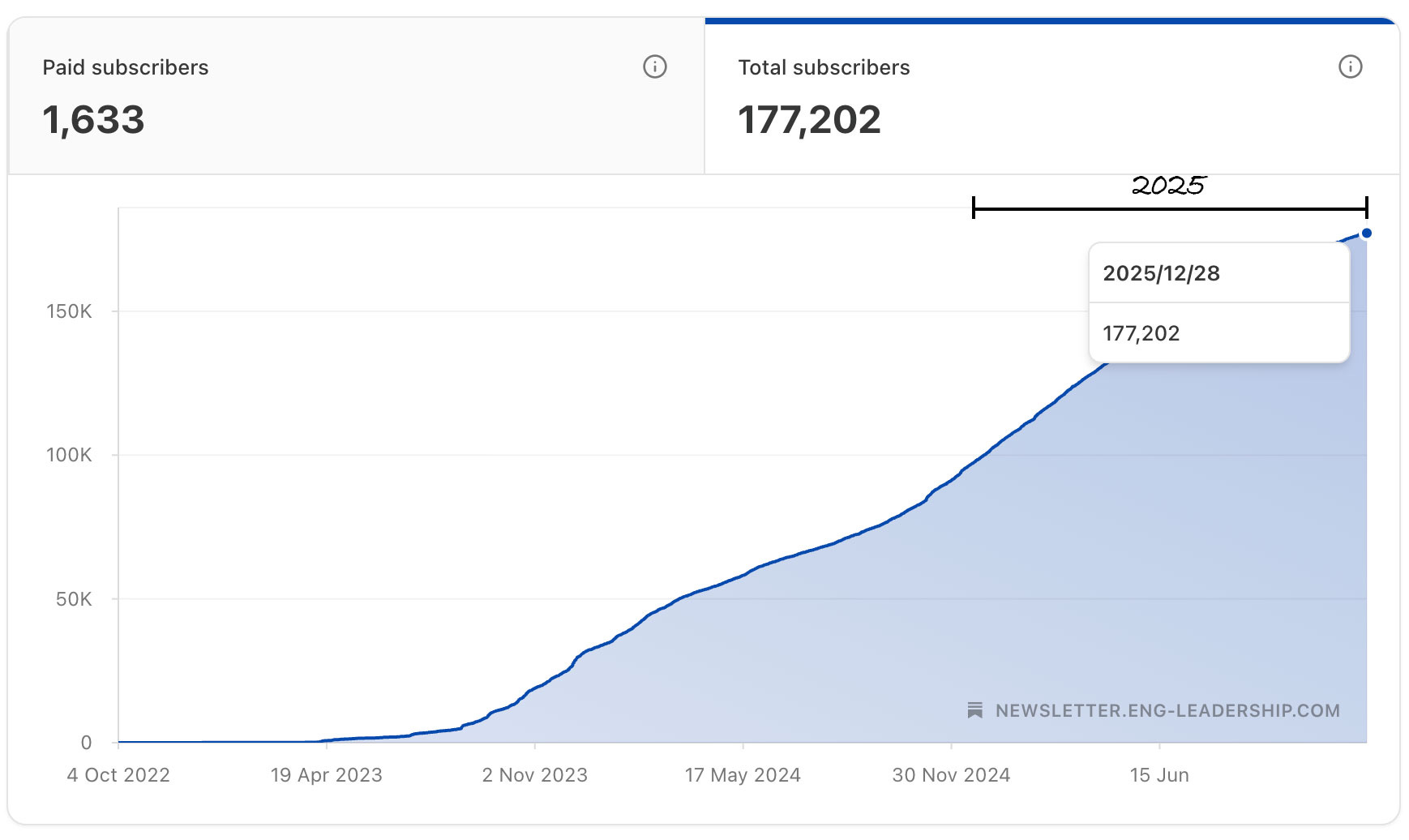 In this article, I am doing an overview of the Engineering Leadership newsletter in 2025 and some of the most important things that marked my year 2025.