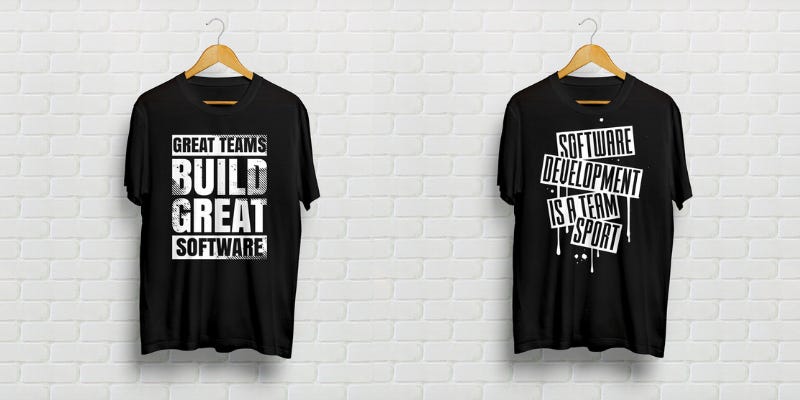 Hence, I also created two shirts, which I proudly wear when doing exercise! One shirt has the quote “Software Development is a team sport” and the other has “Great teams build great software”, which is also the title of this article.