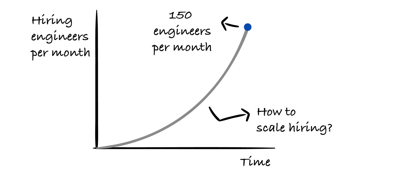 Scaling hiring is hard, and one of the biggest issues you have with it is that it’s impossible to keep the human element at the same level when you are hiring 1 engineer per month versus hiring 150 engineers per month.