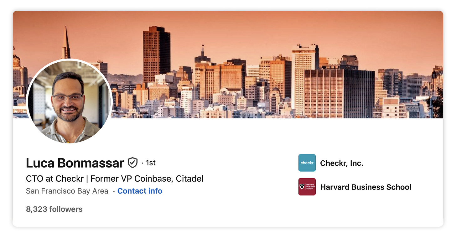Luca Bonmassar is a CTO at Checkr, previously VP of Engineering at Coinbase and Director of Technology at Citadel. He has over 20 years of experience building software products across diverse industries, including Fintech, Crypto, Social Media, and AI/Machine Learning.