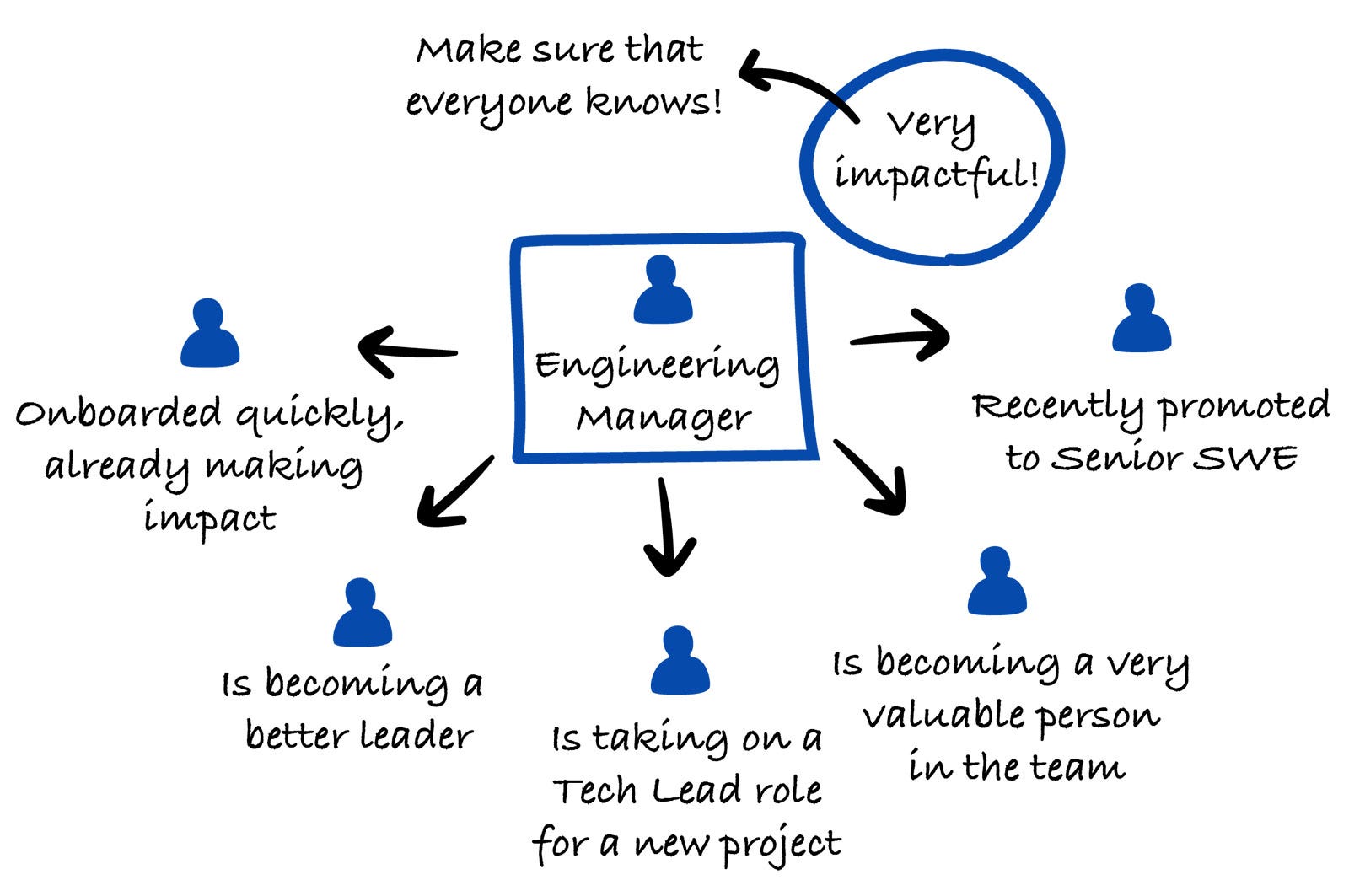 Especially in bigger companies, where there are promotion committees, an important metric of success for engineering managers is how well their people are doing. Are they growing and improving? Or are they stagnating?