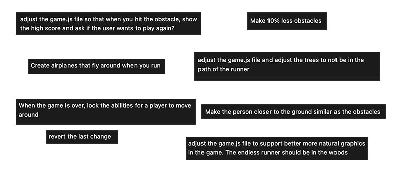 And it created the initial logic for an endless runner game in JS. It didn’t create the index.html file and it didn’t import the logic in it.