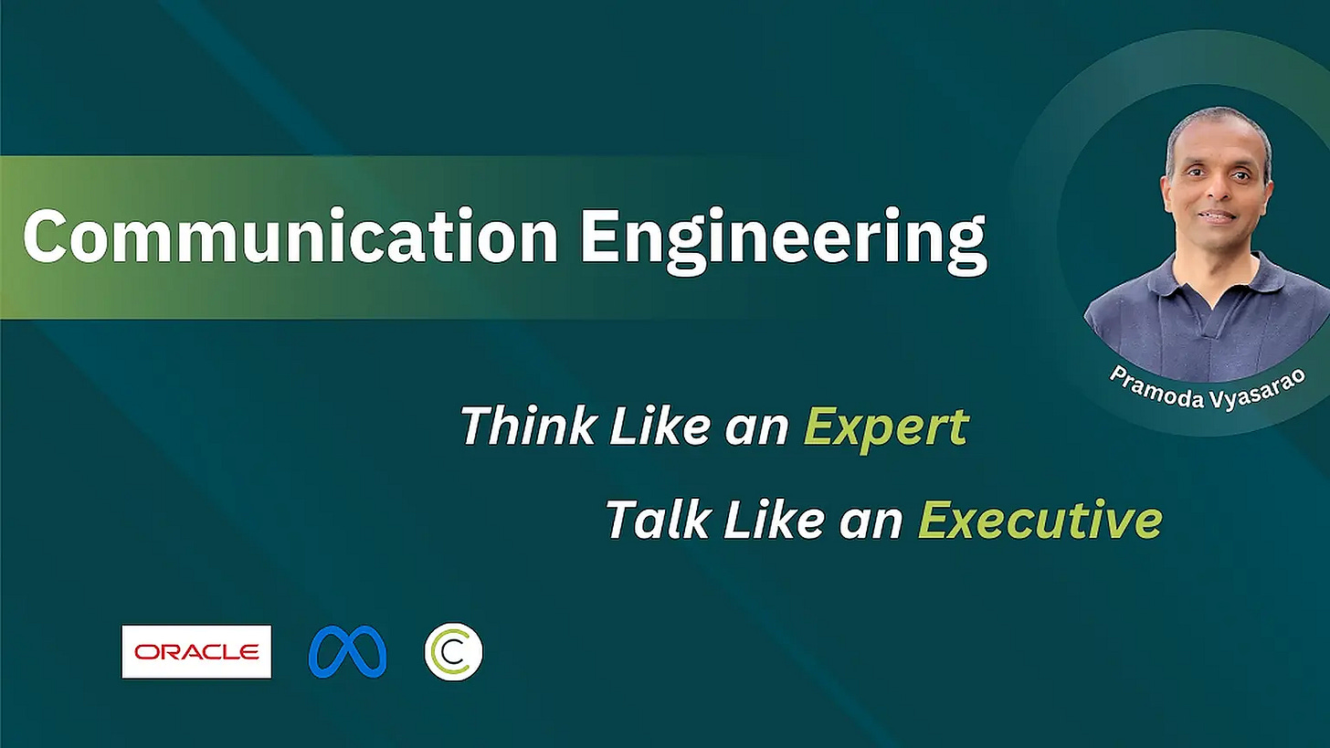 Pramoda Vyasarao is a leadership and communication coach with over 20 years of experience in the tech industry. In his career, he grew from an engineer all the way to Director at Oracle and later also worked at Meta as a Head of Data Engineering.