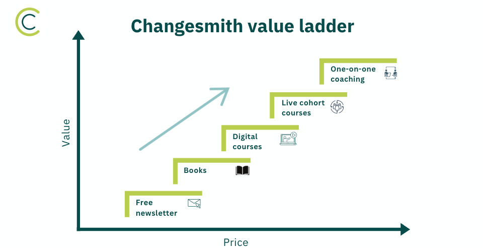 After 18 months as a solopreneur, I realized I wasn’t just building products, I was building a value ladder for Changesmith Coaching.