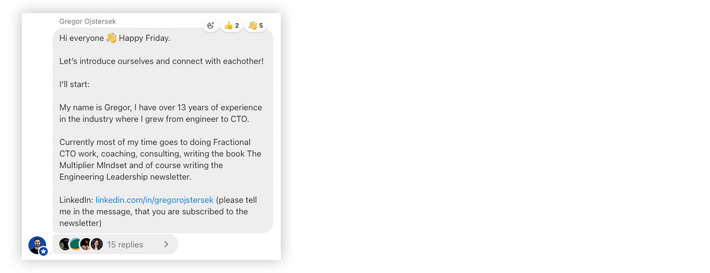 As a paid subscriber, you are now able to ask any questions related to engineering/engineering leadership and get an opinion from like-minded people.