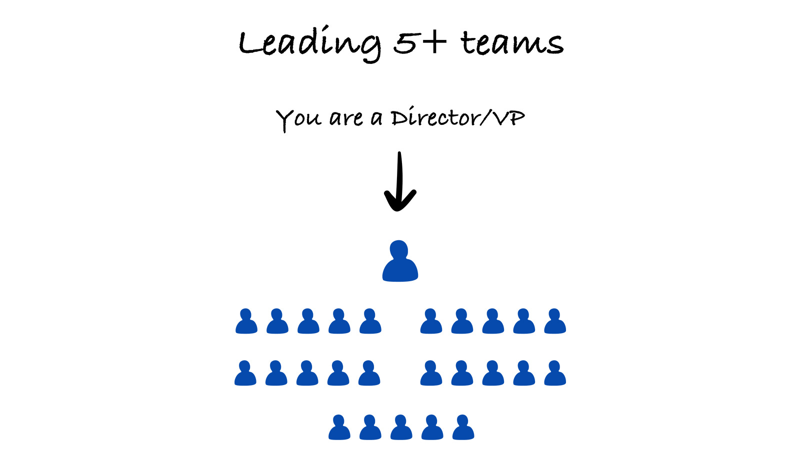 Leading 5+ teams: You are starting to structure the org in a way that can support a bigger scale. You need to prepare and hire your first EM and add additional when needed.