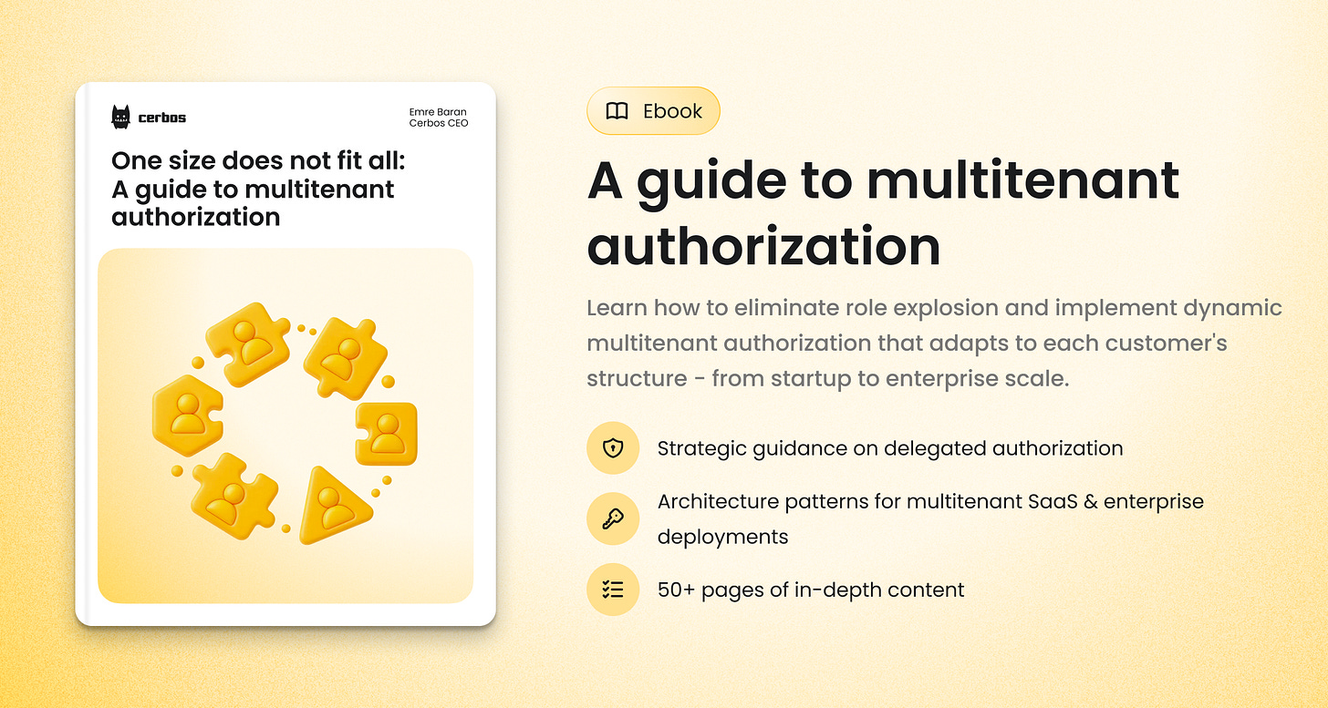 This ebook shows you how to implement dynamic, tenant-aware authorization that scales. Without role proliferation. Inside the ebook, you will find: