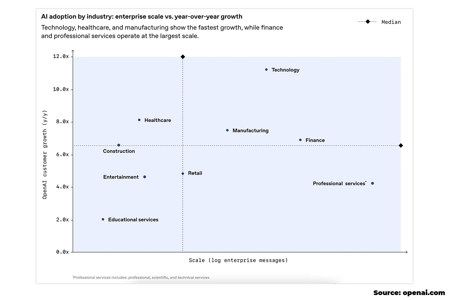 OpenAI surveyed over 9000 people from various fields in 100+ enterprise companies