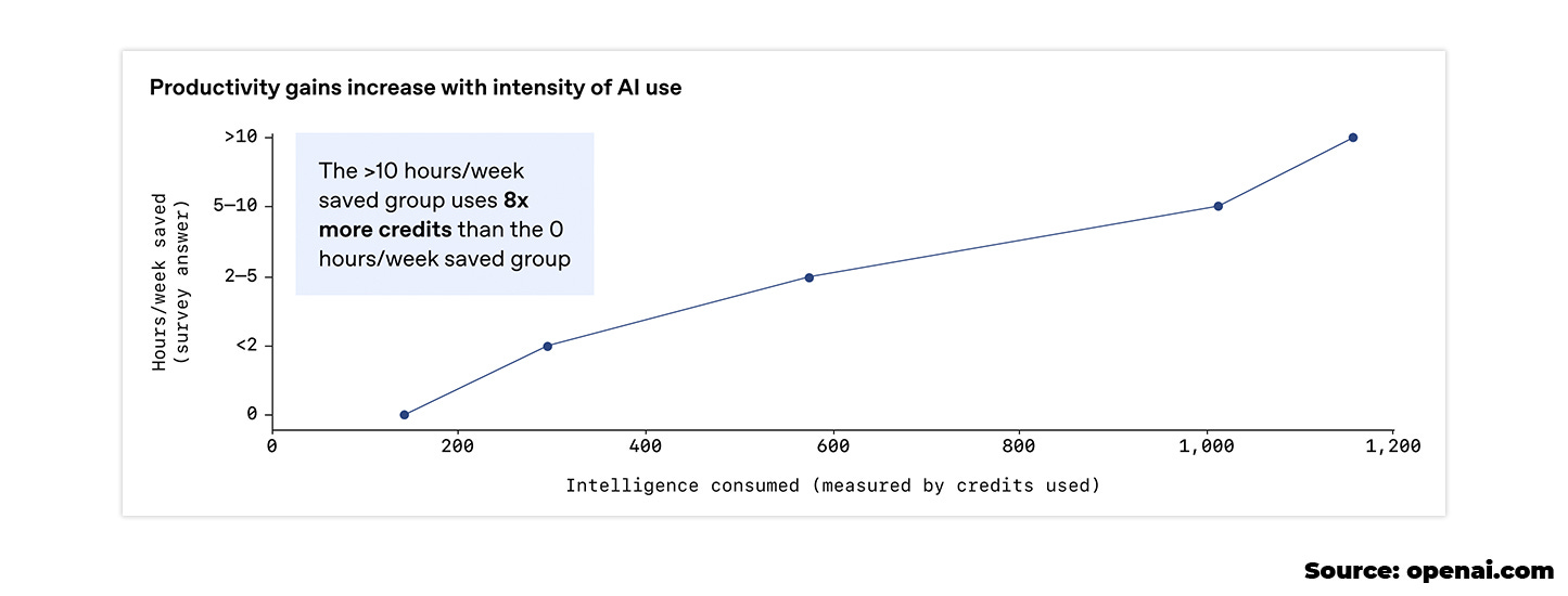 This was also an interesting insight, and that, of course, makes sense. The more AI usage per person, the bigger the productivity increase mentioned by that person.