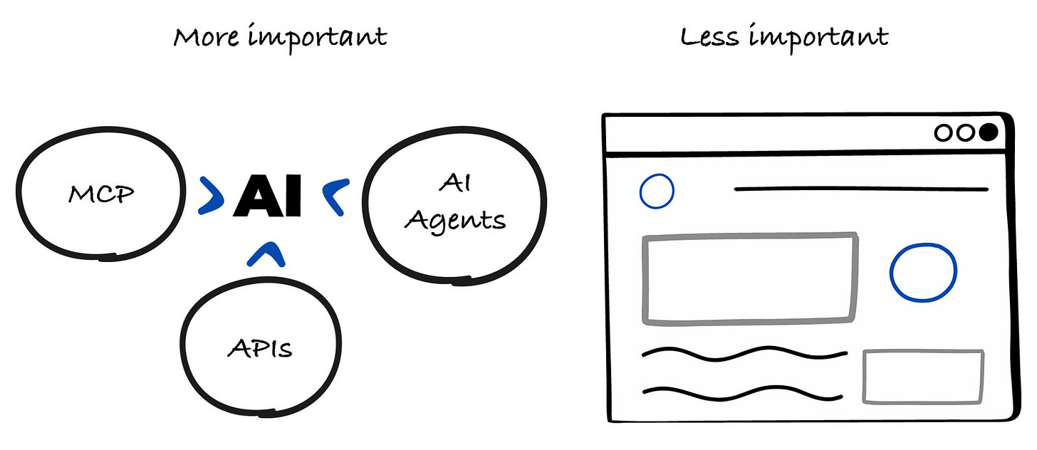But in the Agentic Enterprise, humans aren’t the only ones doing the navigating. Agents are too, and they don’t go to a browser or click through UIs. They call APIs, invoke MCP tools, and run CLI commands directly.