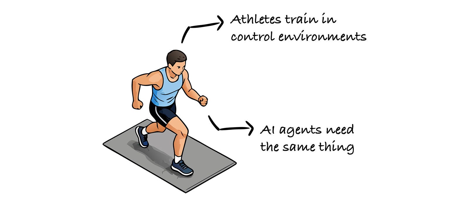 Athletes train in safe, controlled places before real games. AI agents need the same thing.