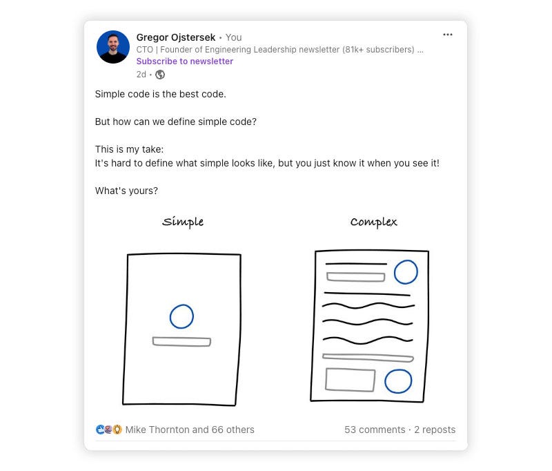 I have asked the LinkedIn Engineering community for their definition of simple code