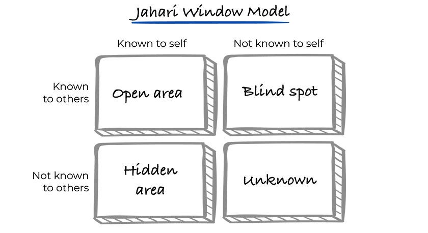 Now, combine these tools using the Johari Window, a model that maps self-awareness into four quadrants: