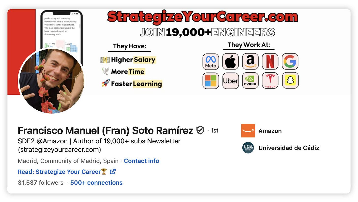 Special thanks to Francisco for sharing his insights with us. Make sure to check him out on LinkedIn and also check out his newsletter Strategize Your Career.