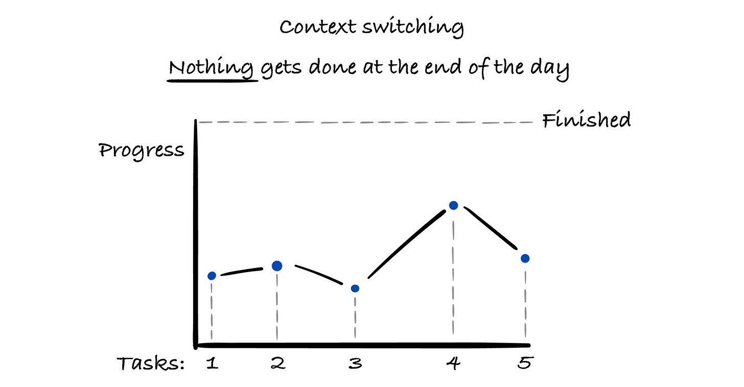 The challenge was no longer writing the function itself. The challenge was regaining the mental model of the system after each interruption. The cost of context switching became the primary drag on output.