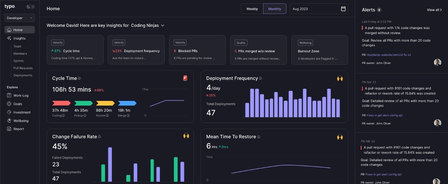 Typo is a software delivery intelligence platform that enables modern software teams with SDLC visibility, well-being insights & tools to code better, deploy faster & stay aligned with business goals.