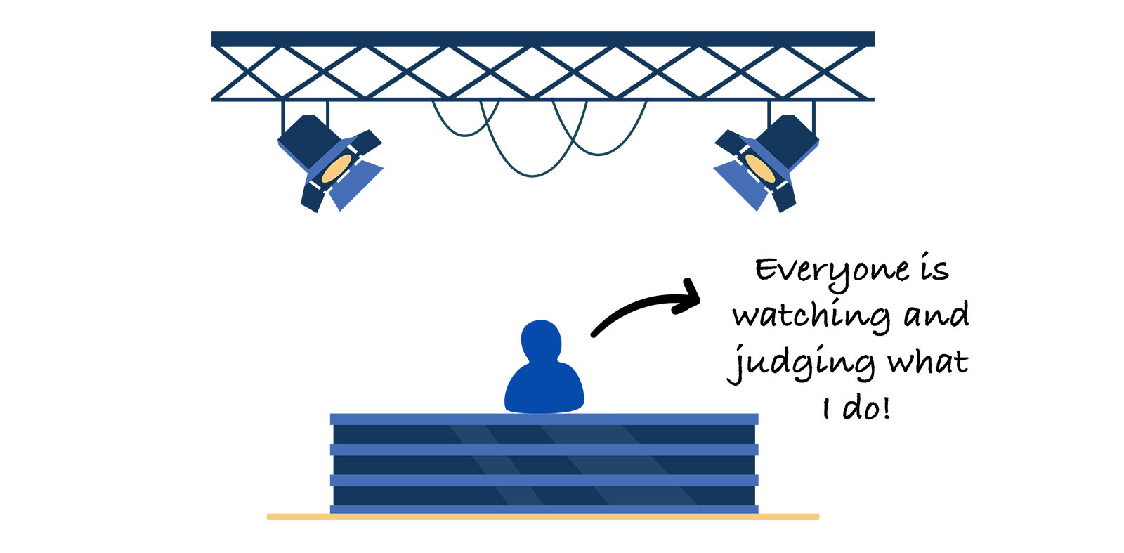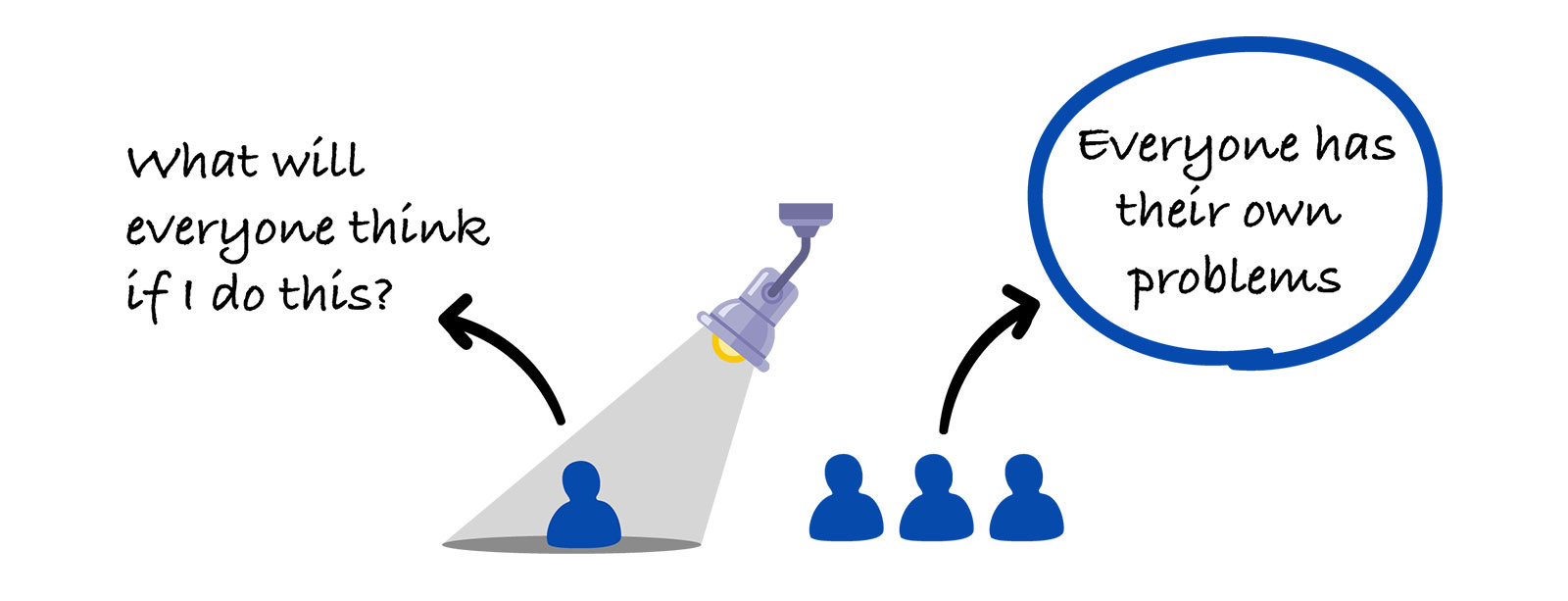 It’s an effect where we overestimate how much other people notice us, think of us, or judge our actions. We feel like we’re standing under a spotlight on a stage. But in reality, everyone else is busy worrying about their own spotlight.