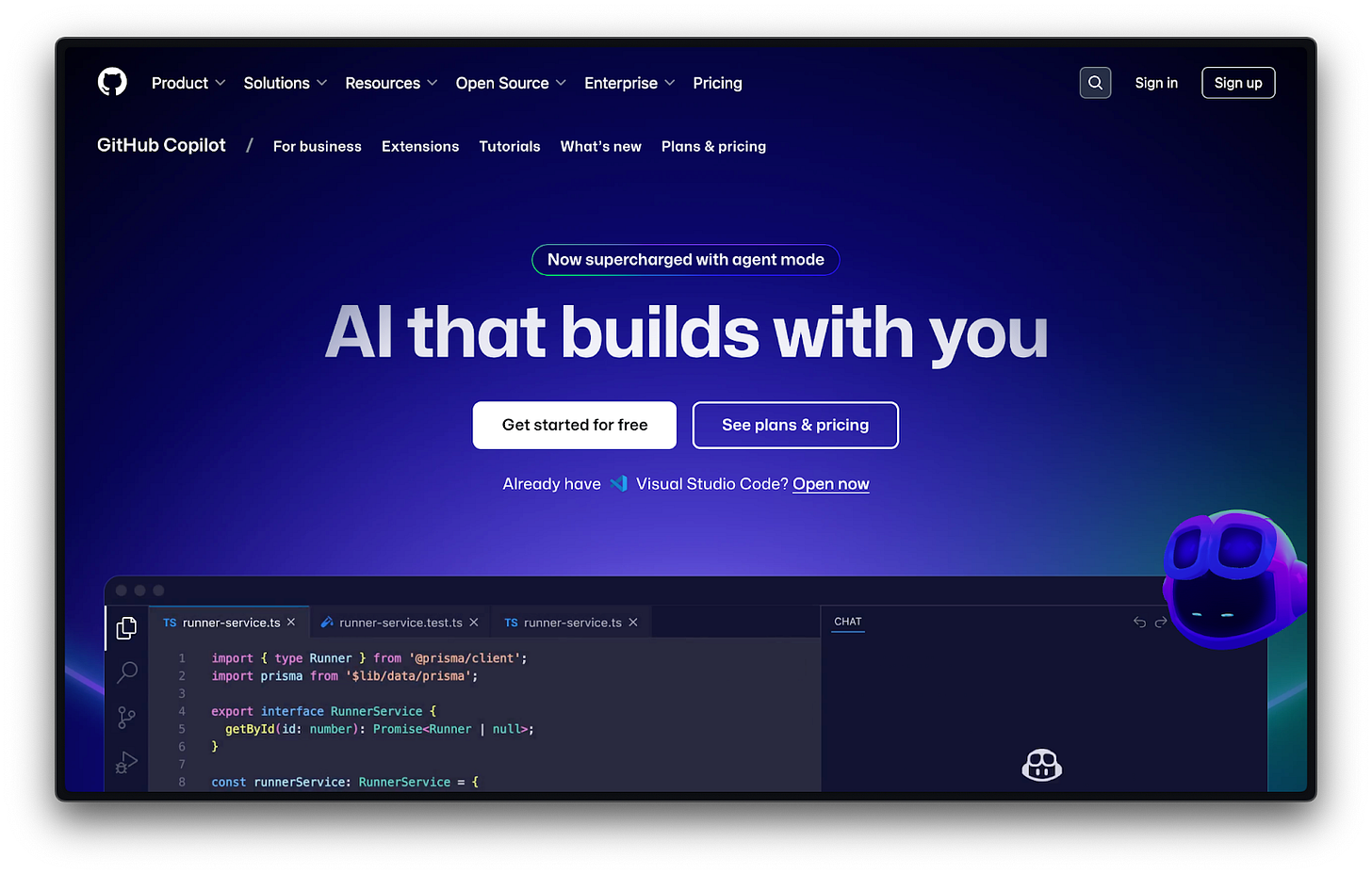 As a simple VS code (or your editor of choice) extension, Copilot started as just fancy autocomplete, but has evolved with more features such as Chat, Copilot Edits, and Agent, all of which help you get more work done in less time.